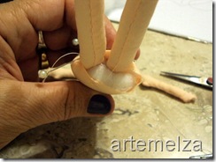 Insert the legs into the body, pin and sew. The seam of the legs should be straight forward. Ficará assim. |